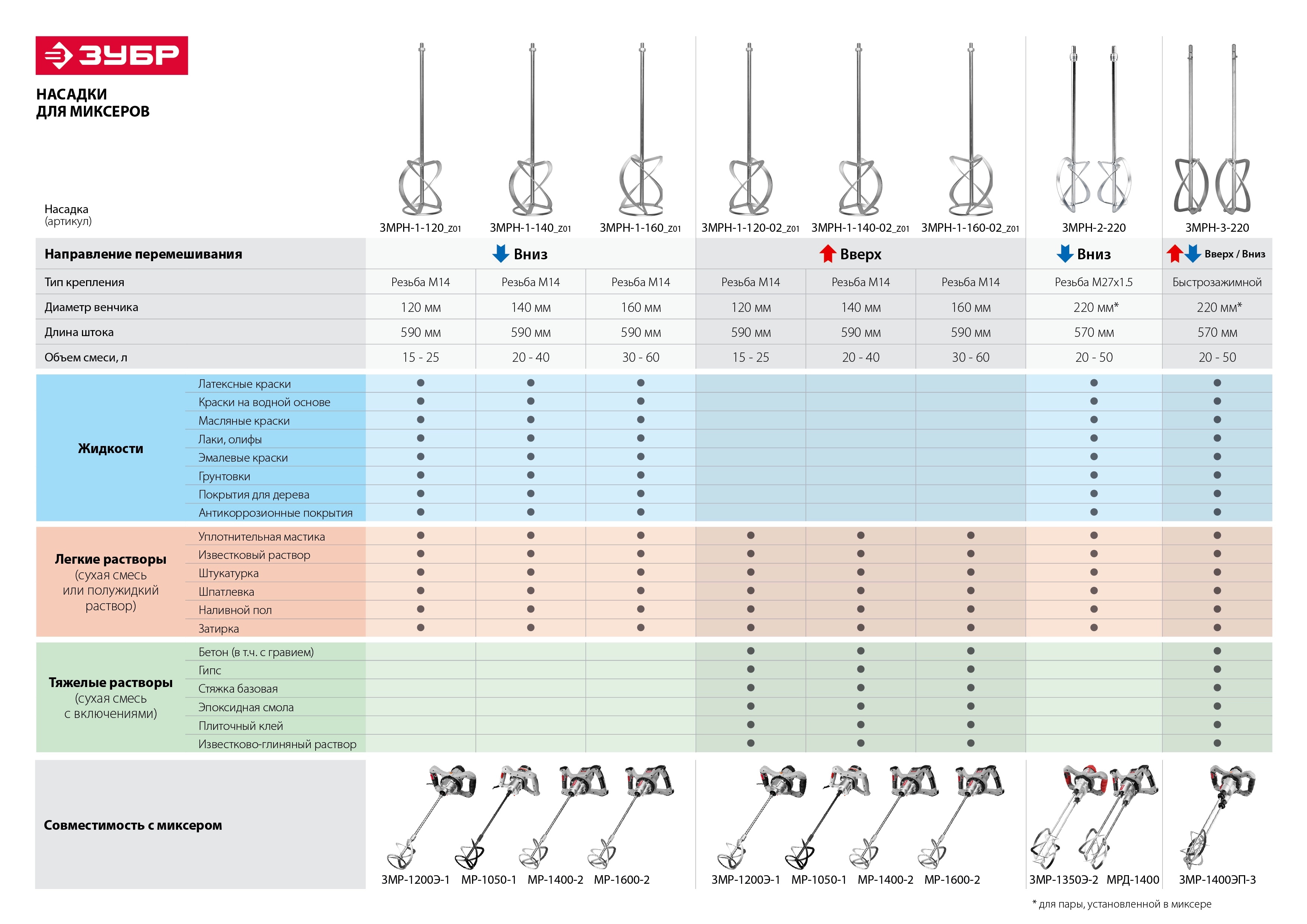 Насадка, ЗУБР ЗМРН-2-220, для миксера ЗМР-1350Э-2, резьба 27x1.5 мм, d=220 мм, L=570 мм, комплект насадок 2 шт.